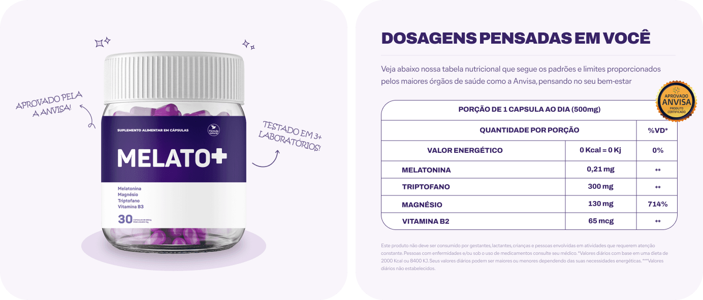 Sinta e aproveite os resultados que uma boa noite de sono entrega em todas as partes da sua vida diariamente com o consumo da Melato+